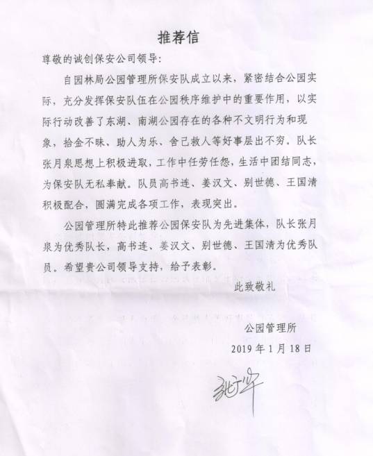 泰山聯(lián)合保安誠創(chuàng)分公司駐小井小區(qū)保安中隊(duì),按照工作部署和要求,結(jié)合實(shí)際,扎扎實(shí)實(shí)地落實(shí)各項(xiàng)安保工作措施,全體駐勤保安隊(duì)員樹立了高度的愛崗敬業(yè)精神,充分發(fā)揮保安隊(duì)伍在區(qū)域秩序維護(hù)中的重要作用,圓滿完成各項(xiàng)工作任務(wù),表現(xiàn)突出。經(jīng)公司研究決定,授予該中隊(duì)為先進(jìn)保安中隊(duì),授予邱建國同志為先進(jìn)中隊(duì)長,對該中隊(duì)給予通報表彰,并被泰安市泰山區(qū)上高街道辦事處小井村評為“最美共建單位”榮譽(yù)稱號,今后公司將全力做好各項(xiàng)保安業(yè)務(wù)工作,確保各項(xiàng)工作健康發(fā)展。