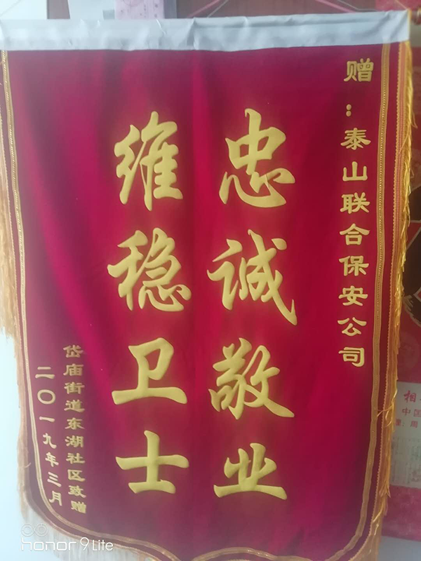 3月12日至3月14日,泰山聯(lián)合保安公司受岱廟辦事處、東湖社區(qū)委托,協(xié)助進(jìn)京處理上訪事件,出色完成了任務(wù),受到單位的高度評價(jià),并贈(zèng)了送錦旗。
