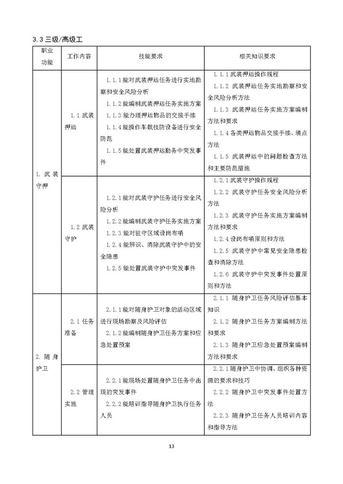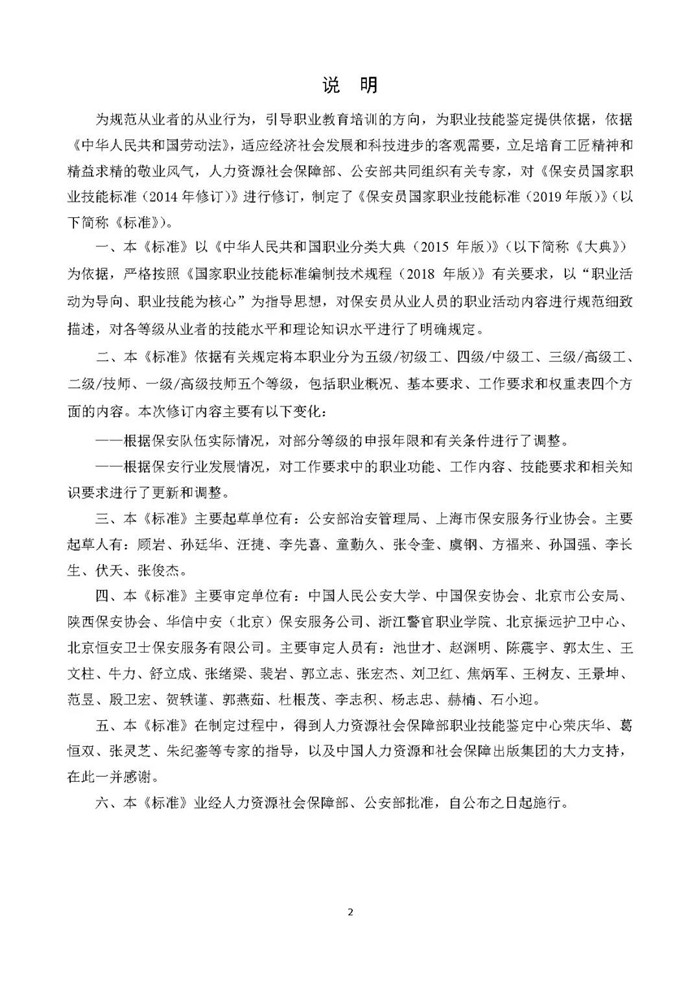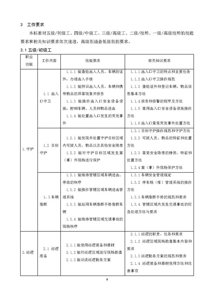 新版《保安員國家職業(yè)技能標準》